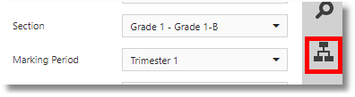 The tree symbol opens a document map where you can jump from record to record quickly. Often the document map will be the names of the students in a section.